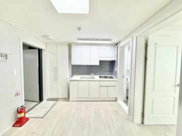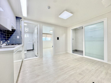 경북대 복현오거리, 복현 주민센터 근처에 있는 신축 쓰리룸입니다. 방2, 거실1, 베란다, 화장실1 있는 엘리베이터 있는 건물의 쓰리룸입니다. 최근에 지어진 건물로 굉장히 깨끗하답니다